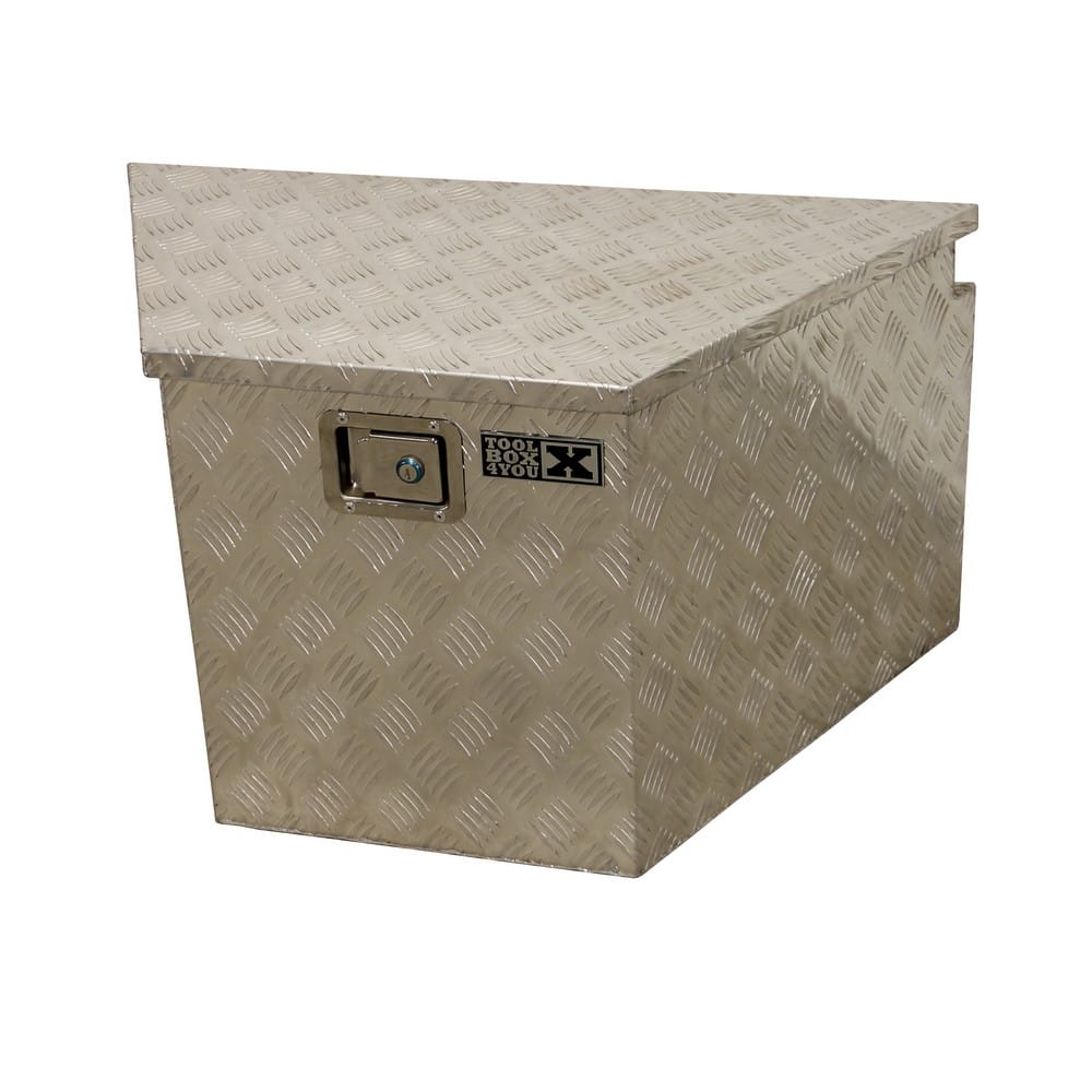 De Bullram JSB83TB opbergkist traanplaat trapezium is geschikt voor aanhangers, voertuigen en werkplekken waar weersbestendige opbergruimte nodig is. In deze aluminium disselbak blijven gereedschap, spanbanden en andere materialen beschermd tegen vocht en vuil, zowel tijdens transport als bij opslag buiten.