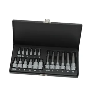 Mit 16 verschiedenen Steckschlüssel-Einsätzen in einem Set bietet es eine umfassende Auswahl für verschiedene Anforderungen.