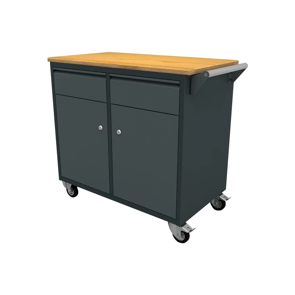 This tool trolley from TOOLBOX4YOU consists of 2 fully extendable drawers with ball bearing guides and 2 doors.