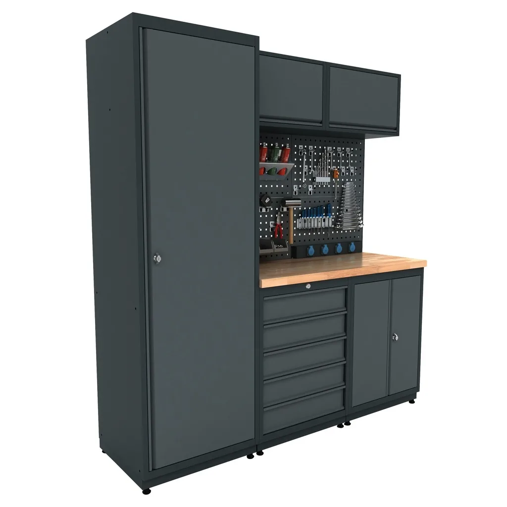 Mit der Expert Werkstatteinrichtung von TOOLBOX4YOU lässt sich jede Werkstatt nach dem eigenen Geschmack gestalten. Der Innenraum sorgt für eine professionelle Optik, bietet idealen Platz für allerlei Tätigkeiten und ist mit vier 230-V-Steckdosen und ausreichend Stauraum für Werkzeug ausgestattet. Alle Teile aus der Expert-Serie sind separat erhältlich, sodass Sie Ihre eigene Werkstattausrüstung zusammenstellen können, wofür dieses Modul ein Beispiel ist. Dieses Werkstatteinrichtungsmodul Expert Serie besteht aus: