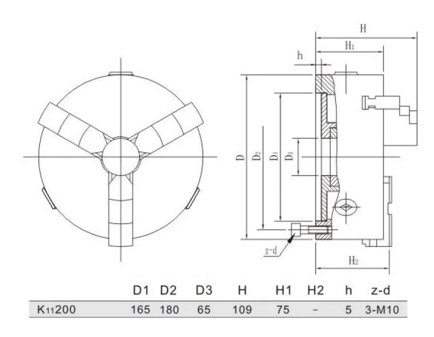 Self-centering three-jaw chuck 200mm