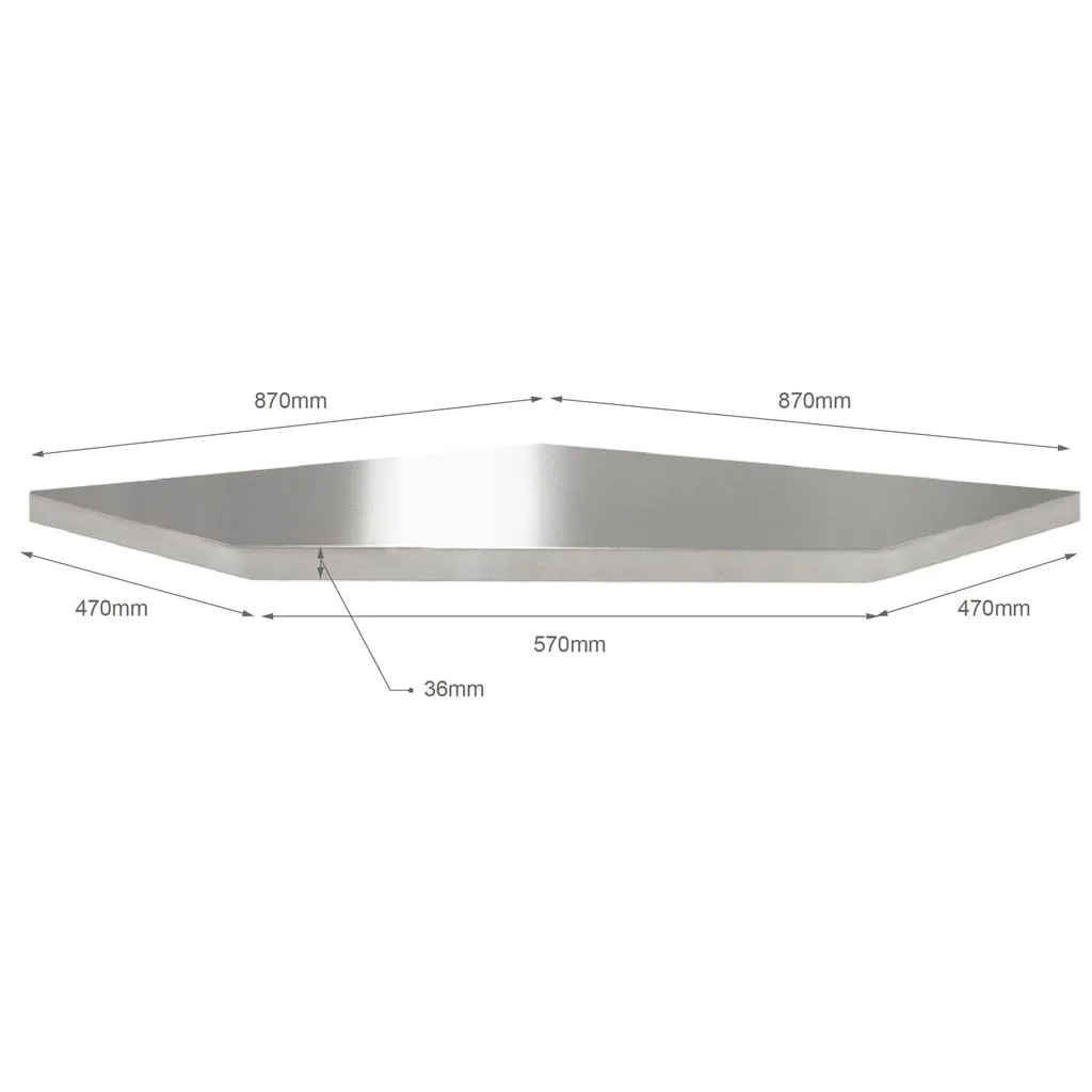 Wat zijn de afmetingen van het RVS werkblad voor de hoekkast?